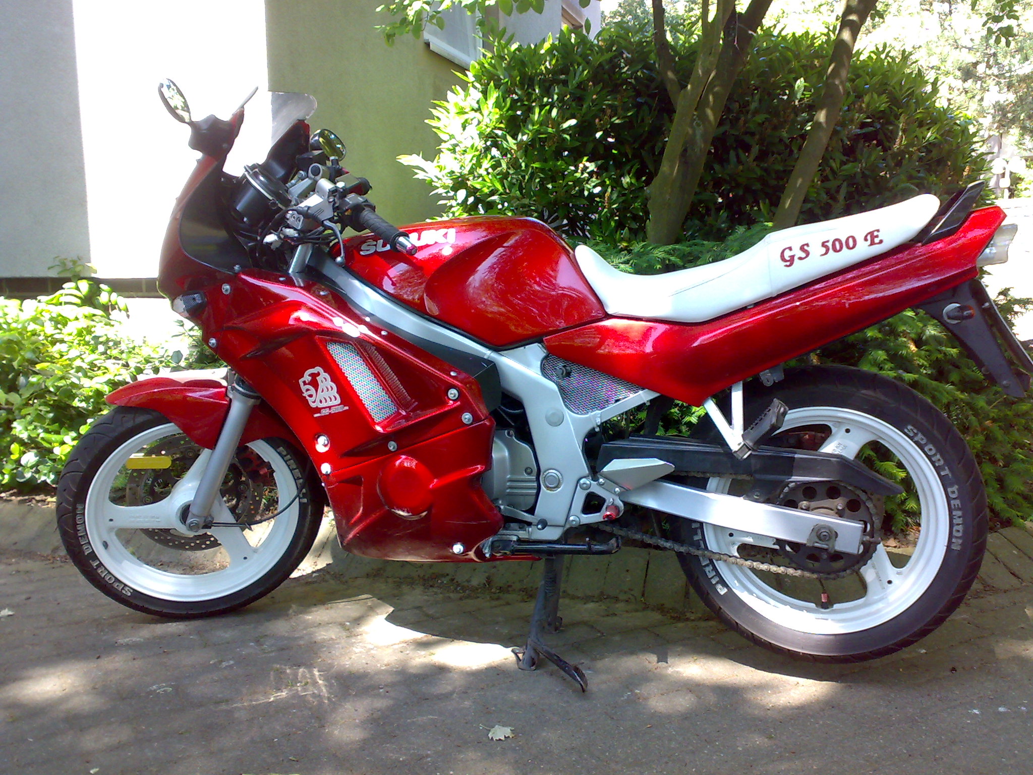 das ist die normale GS500F Verkleidung wo irgendwer nen GSX-R Aufkleber raufgepappt hat. Nur ist der GS Motor kein X.