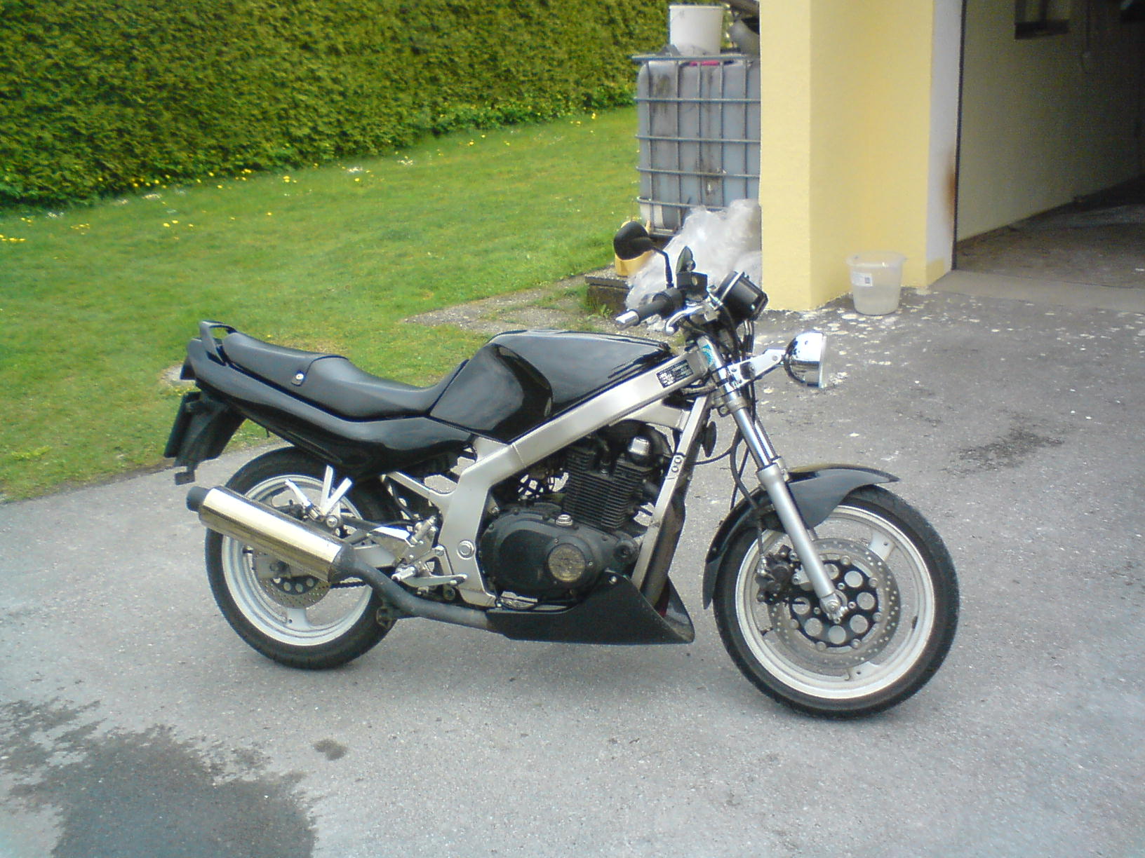 Ich hab auch mal angefangen meine Kleine etwas zu verändern. So sah sie vorher aus http://img241.imageshack.us/img241/8...1443tm5.th.gif So imo http://img60.imageshack.us/img60/229...3343pc8.th.jpg ToDo: Verkleidung entfernen : Done Lackieren von Heck, Tank und Bugi in BMW 475 Black Sapphire : Done [color=#40BF00]Anbringen von Heck, Tank und MBD Bugi Federbein einbauen (Wilbers Eco530) : Done LSL Fußrasten (Fahrer und Sozius) : Done neue Blinker : Done Doppelscheinwerfer Vorne : Done Rücklicht umbauen neue Spiegel : Done Kabelbaum schön verlegen evt. kürzen : Done und vorm Saisonstart einen Satz BT45 : Postmann war da : http://img518.imageshack.us/img518/9...3341jw7.th.jpg http://img340.imageshack.us/img340/8...3342go9.th.jpg Spiegel, Blinker, Fußrasten, Rücklichter und Scheinwerfer sind zwar auch schon da, aber der Akku meiner Cam ist leer ;( Bin offen für weitere ideen und Hilfen |