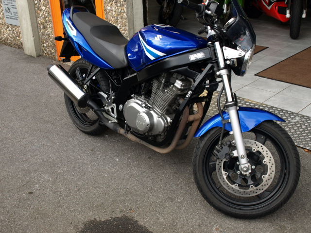 Zu Verkaufen ist eine Susuki GS500E in einem Top Zustand. Es handelt sich hier um eine gedrosselte für Fahranfänger, das Motorad wurde nur bei schönem Wetter gefahren und immer sehr gut gepflegt (Geragenfahrzeug). Der Zustand des Motorads ist sehr gut. Mit mir sind es 2 Vorbesitzer. Dem Vorbesitzer ist sie wohl bei langsamer Fahrt hingefallen (siehe Bild). Orginale 11000 km! Tüv am 06.2009 Ohne erkennbaren Mangel bekommen. Neue Batterie und neuen Hinterreifen am 06.2009 bekommen. Am besten ist vor Ort anschauen.Das Motorad ist abgemeldet. Mit mitgebrachtem Roten Kennzeichen kann das Motorrad gerne Probe gefahren werden. Fragen können per Tel. gestellt werden, oder Emails werden gerne und schnell beantwortet!