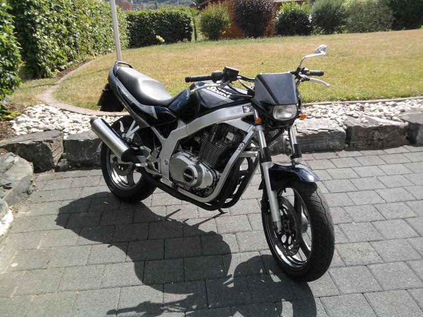 Also ich habe eine SUZI Baujahr 1998 mit 46 PS und ein paar Umbauten. Geänderte Fußrasten ( Alu ), mini Blinker und Spiegel, Edelstahlkettenschutz, LSL Dragbarlenker, Acerbis Frontmaske mit mini Amaturen, Heckhöherlegung um 3 cm und 150/70 17 auf original Felge was sehr gut funktioniert. Hoffe die Bilder sind zu sehen. DANKE Gruß Uwe Geändert von Bullshornet (13.08.2010 um 23:44:49 Uhr) |