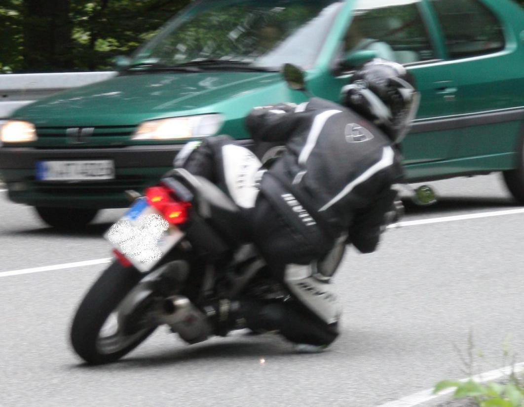 Das Foto ist nicht gerade das Maximum an Schräglage (ein besseres hat mein "Fotograf" nicht hinbekommen...), aber es zeigt dass nichts aufsetzten kann. Da meine GS Zeit vorbei ist werde ich die komplette Takkoni Anlage mit Krümmern, den Fußrasten mit ABE für die Gelenke und dem Schalthebel (anderer Winkel) verkaufen, sozusagen als "Schräglagen-Set" oder einfach weils es jemanden gefällt. Das Angebot stelle ich nächste Woche mit Bilder in den Marktplatz. |
