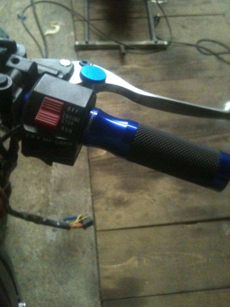 Bremsscheiben sind montiert, die Felgen sind mit neuen Reifen bestückt und eingebaut. Und meine neuen Griffe sind montiert.