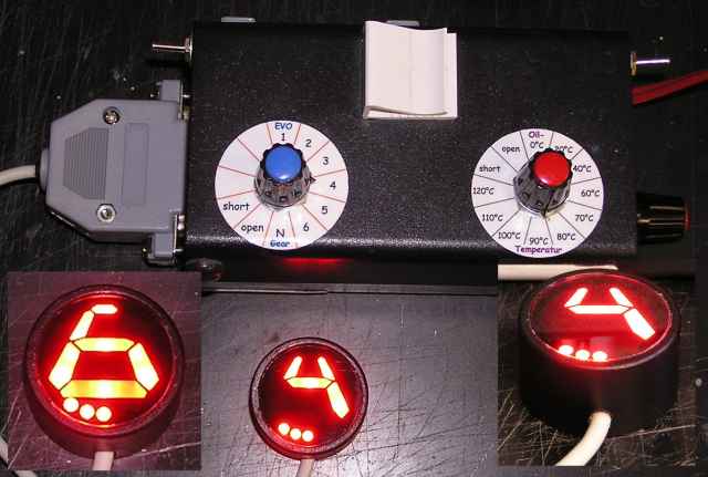 Noch eine kleine Geschichte vor Weihnachten .... ich bin seit ca. 2 Monaten dran ein Display zu bauen - genauer gesagt ein LED-Display mit gesamt 14 LEDs. Bauen heißt in diesem Fall Platine, Display-Körper (wie die bekannten 7-Segment-Anzeigen) und die passende Ansteuerelektronik. Letzere kann zumindest heute schon normale 7-Segment-Displays ansteuern und seit gestern auch den ersten Prototyp des (von mir so genannten) 7&7-Segment-Displays, ist für masseschaltende Ganggeber (wie sie die GS auch hat), Ganggeber die eine Spannung liefern (Bandit ab 2008, Haya, ....) und irgend wann einmal für Möps ohne Ganggeber mit einem linearen Magnetfeldsensor am Schaltgestänge (hat sich bereits an einigen Triumph bewährt). Zusätzlich ist eine 5-stufige Öltemperaturanzeige mit drin (die 5 Punkte unter der Zahl). Die gesamte Elektronik ist ein einem SubD25-Steckergehäuse drin (Mega8 mit Schaltreglerspannungsversorgung).