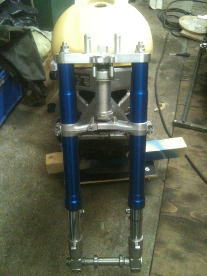 * Gabel Srad von 1996 voll einstellbar mit Wilbers Federn neu gemacht und Holme blau eloxiert. Felge 3,5 x 17 mit 120/60er Reifen