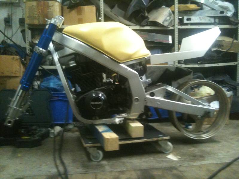 * GSX 400 RR mit Überzug von 1989, mit 4,5 x 17er Felge mit nem 160er inkl. Wilbers 631 mit externem Behälter