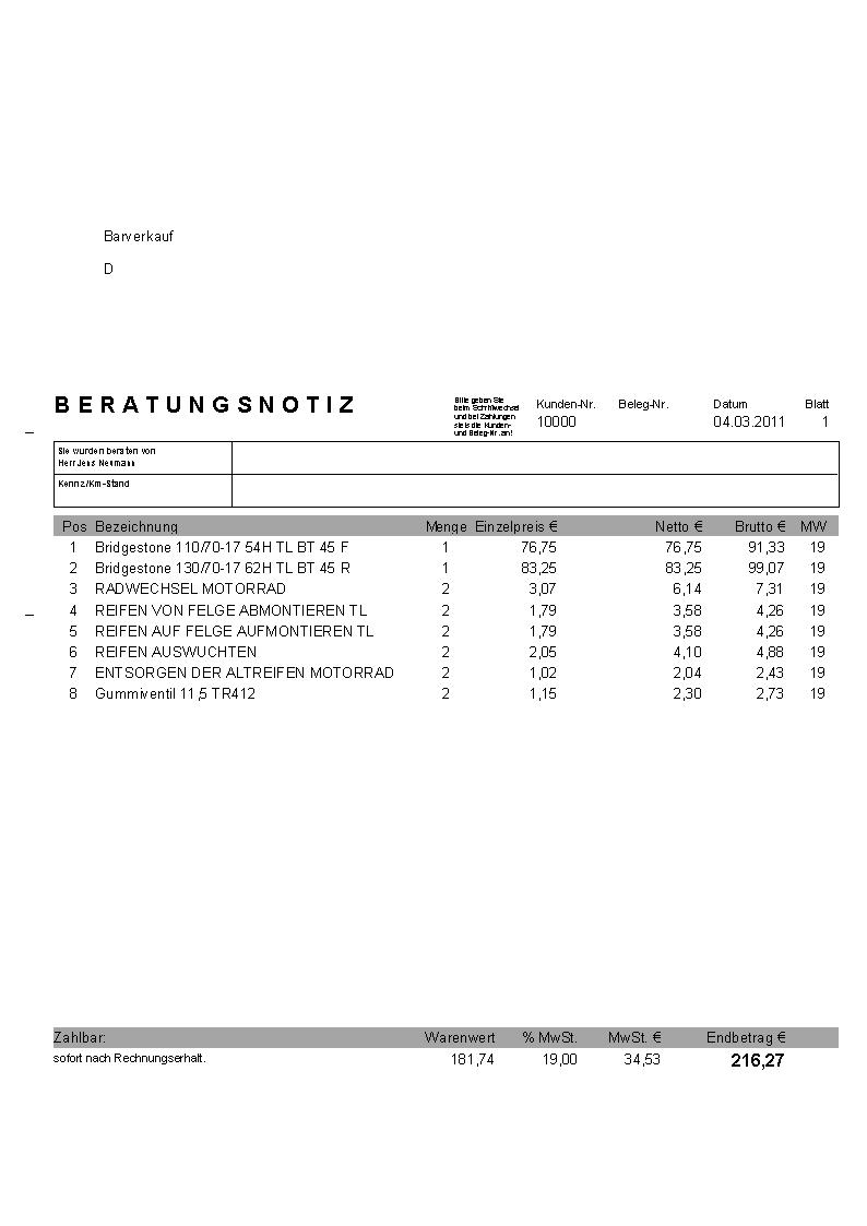 Besser, und nicht immer unbedingt teurer, ist ein Komplettangebot vom "Händler deines Vertrauens", der bietet dir nämlich auch nen vernünftigen Service (...nachwuchten, Reklamation, Reifengas Druckkontrolle und vieleicht auch mal nen schönen Schlüsselanhänger oder Basecap). Im Anhang zum Beispiel ein Angebot (ungeschönt) aus unserem Hause inkl. Montage und Radwechsel. Wir montieren mit einer Maschine die wir nur für Motorrad benutzen. Airtraulic Ausgewuchtet wird stationär elektronisch mit extra Motorradaufnahme.