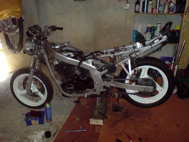 Klar ist das noch Low-Budget. Hat bisher alles zusammen noch keine 500 Glocken gekostet. Allerdings geht das nur, wenn man sich ein paar Spendermotorräder an Land zieht, schicke Teile behält und den Rest wieder verkauft. So gibt es zwar ne Menge Arbeit, aber auch tollen Kram für lau...