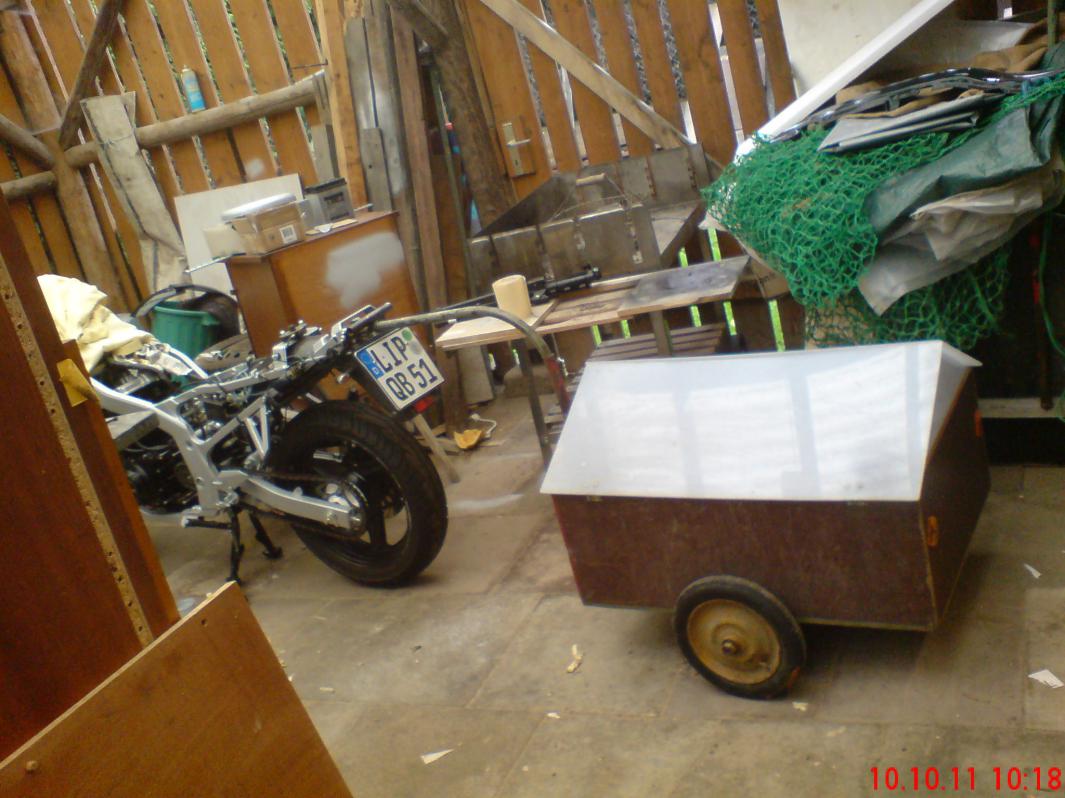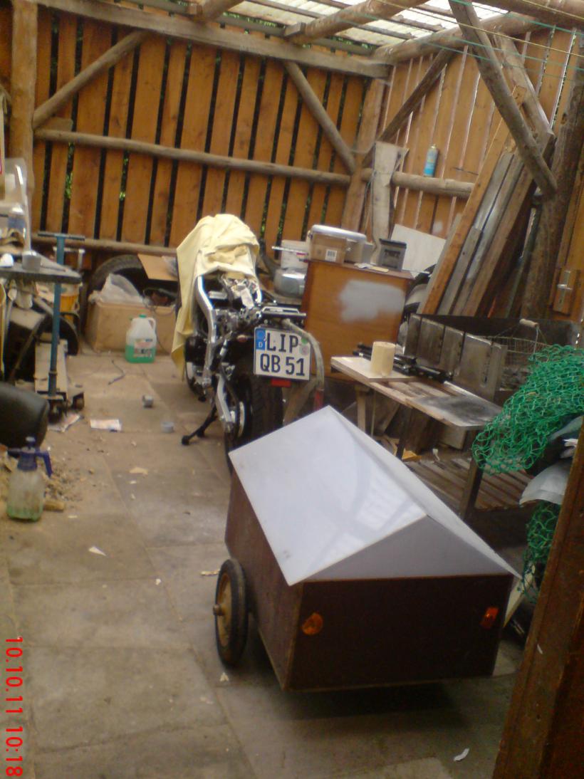 Hier der Fahrradanhänger (ich hoffe die nicht fahrtüchtige GS zählt trotzdem)