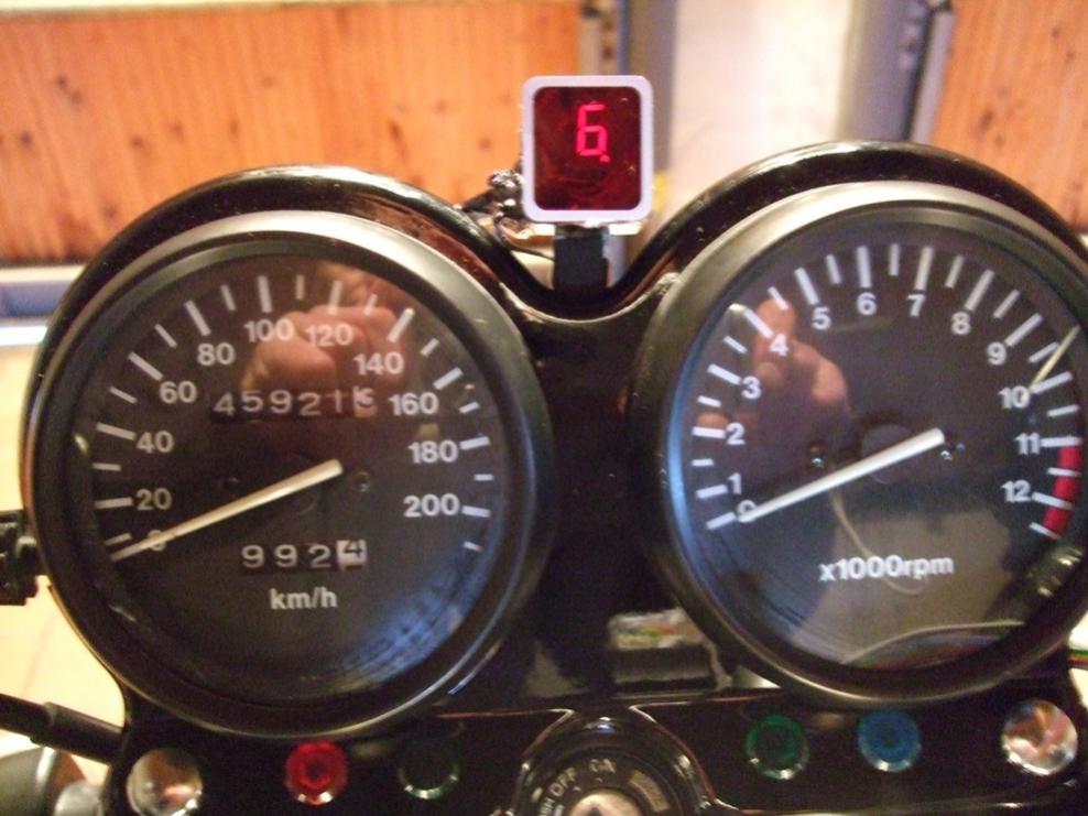 Habe mir einen GSX400 Gangsensor bei ebay gekauft, diesen gegen den originalen Gangsensor ,der das Leerlauflämpchen gegen Masse schaltet, ausgetauscht.