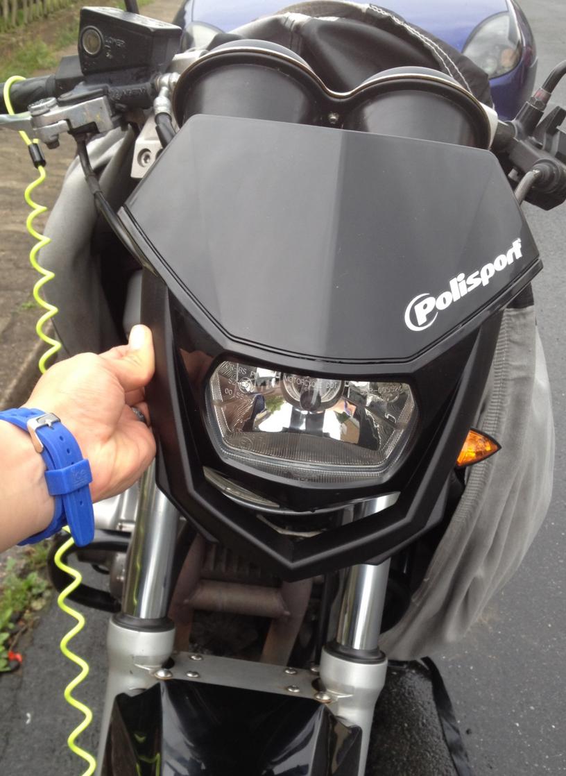 Eine Polisport Halo Maske Sie hat e-Prüfzeichen und ich hab sogar den Hersteller angeschrieben, ob ich sie eintragen muss: Nein weil die DOT Kennung hat Naja morgen wenn ich sie von meinem Freund endgültig geschenkt bekomme wird sie auch schon abgeholt und foliert. Wenn alles gut geht kann ich sie am Wochenende auch schon anbauen. Bis dahin muss ich dann noch andere Halterungen sowie Blinker verlängerungen besorgen Auf dem Foto ist sie nur angehalten