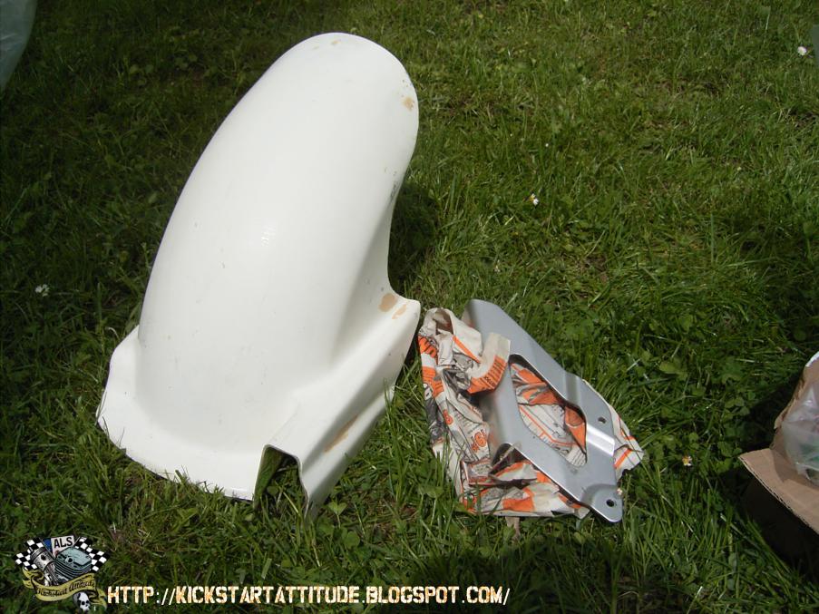 Der Umbau geschieht auf der Basis eines offenen 94er Rahmens, verbaut werden eine Five Stars-Vollverkleidung, ein 170er Hinterreifen und eine Motad-Auspuffanlage, Dynojet Stage, Höherlegung dank Bandit-Federbein um nur mal ein paar Eckdaten zu nennen desweiteren hat mein Vater noch viele Goodies angesammelt (später dazu mehr).