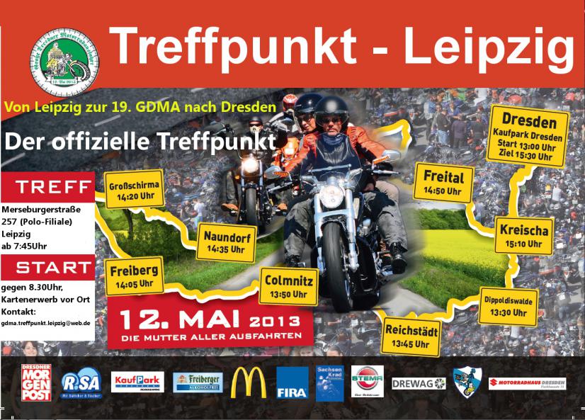 auch in diesem Jahr gibt es wieder einen offiziellen Treffpunkt in Leipzig um zur Gdma nach Dresden zu gelangen. In Chemnitz gibt es vorher eine Anreise nach Leipzig um von dort aus in Kolonne nach Dresden zu starten. Leipzig: http://www.gdma.de/die-ausfahrt/tref...punkt-leipzig/ Chemnitz: http://www.gdma.de/die-ausfahrt/tref...unkt-chemnitz/ Facebook: https://www.facebook.com/events/420822441320481/ Viele Grüße |