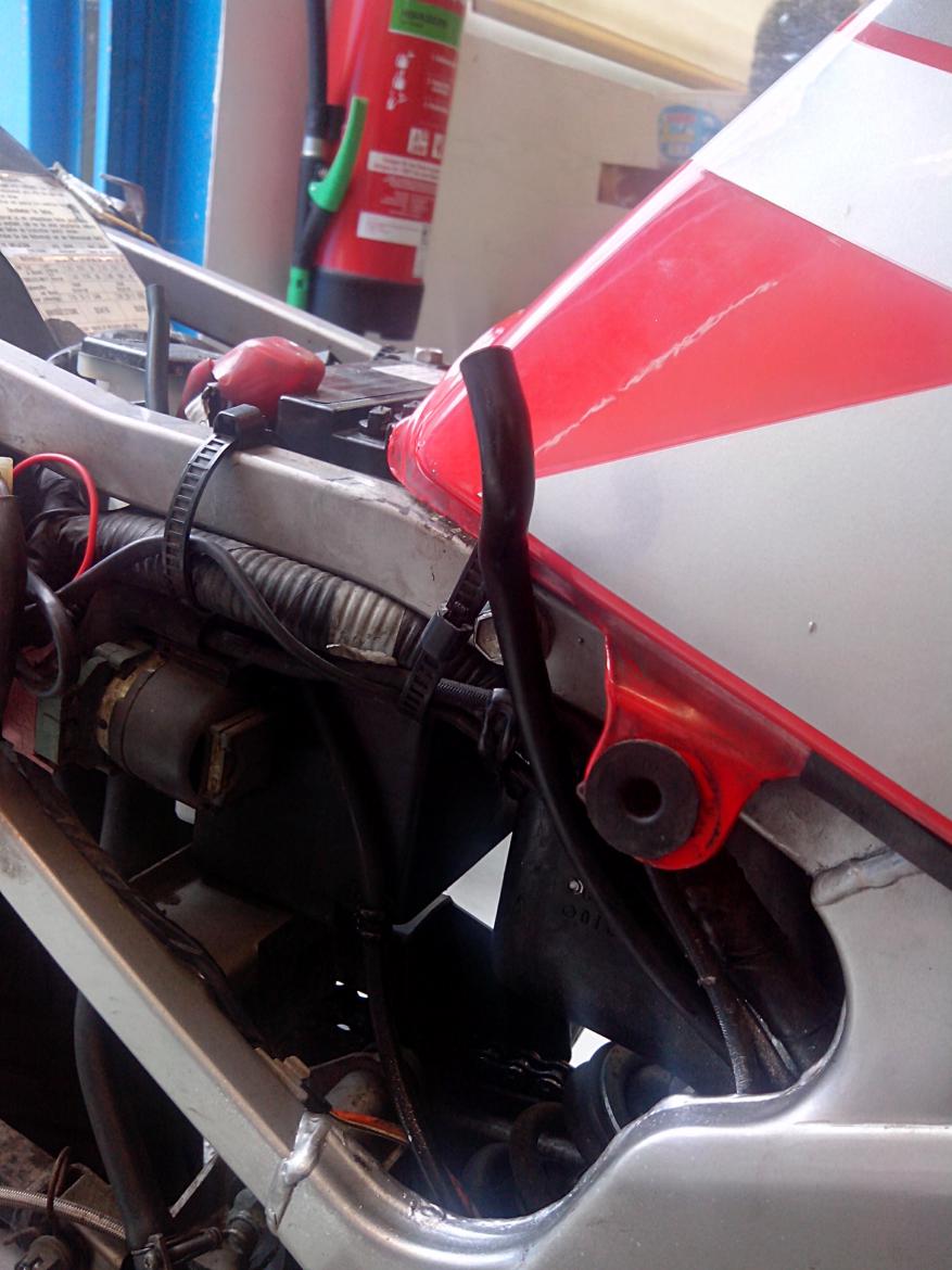 an die batterie???? sorry dass ich gerade so dumm frage meinst du ANGESCHLOSSEN oder per halter aussen vorbei gelegt weil aussen an der batterie läuft ein kleiner schlauch AUSSEN VORBEI der ist aber dünner |