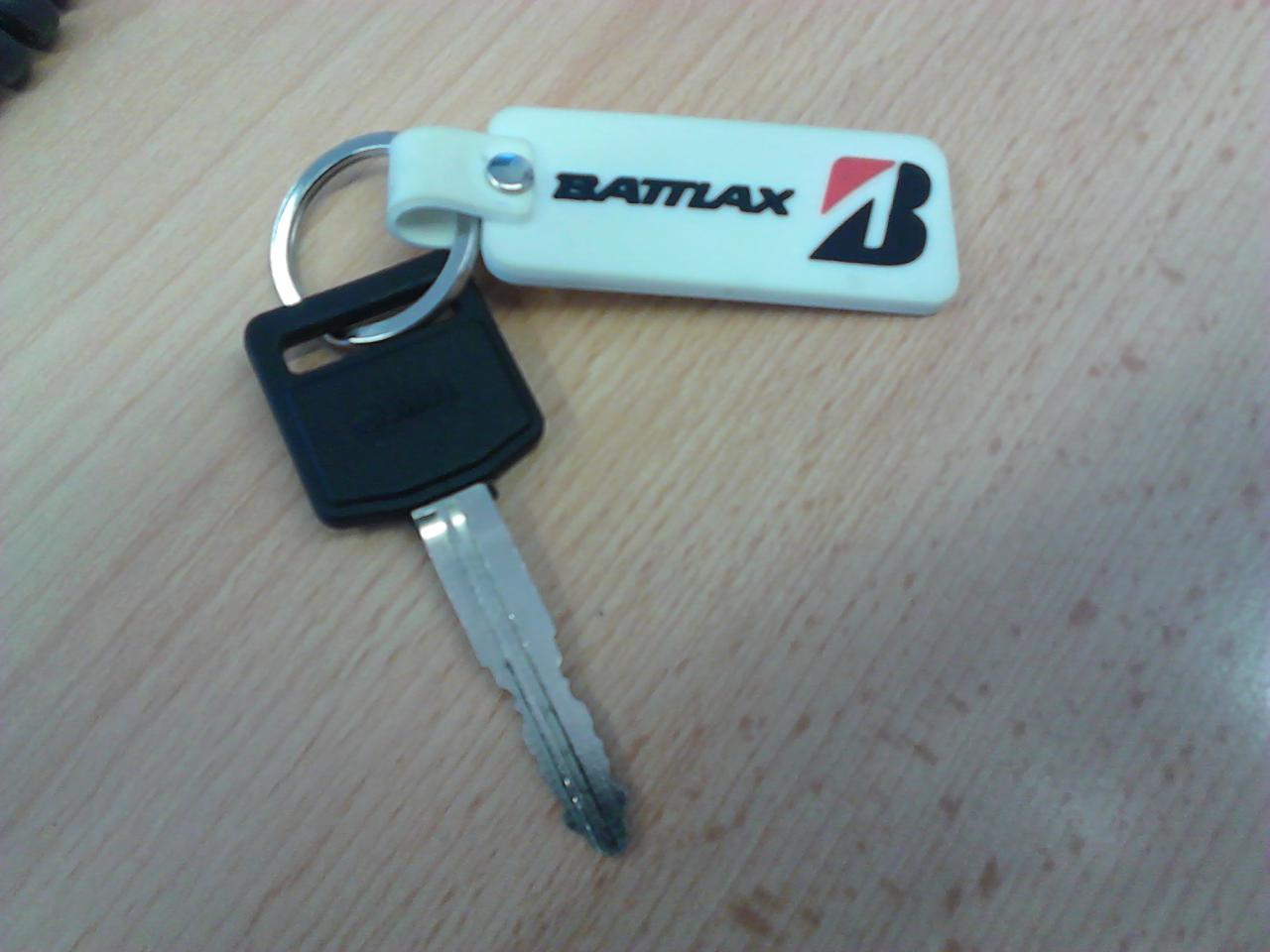 Ich habe nur nen Gummianhänger, mit meinem Namen drauf, dran. Hab den großen Schlüsselring aber abgemacht und mit nem kleinen direkt an den Schlüssel