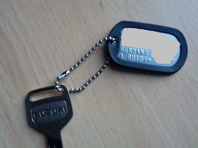 zeigt doch mal was an euren Schlüsseln hängt (wenn denn was dranhängt). Ich hab eine Kette mit Dogtag. Vorteil 1: Der Dogtag liegt genau in dieser "Kimme" bei der fetten Mutter unter dem Zündschloss und hält da sicher, dank Silencer klappert auch nichts. Vorteil 2: Mein Name steht drauf, kommt also evtl zu mir zurück und meine Blutgruppe steht drauf, was mir im Zweifelsfall mal das Leben retten könnte... Ich bin begeistert davon