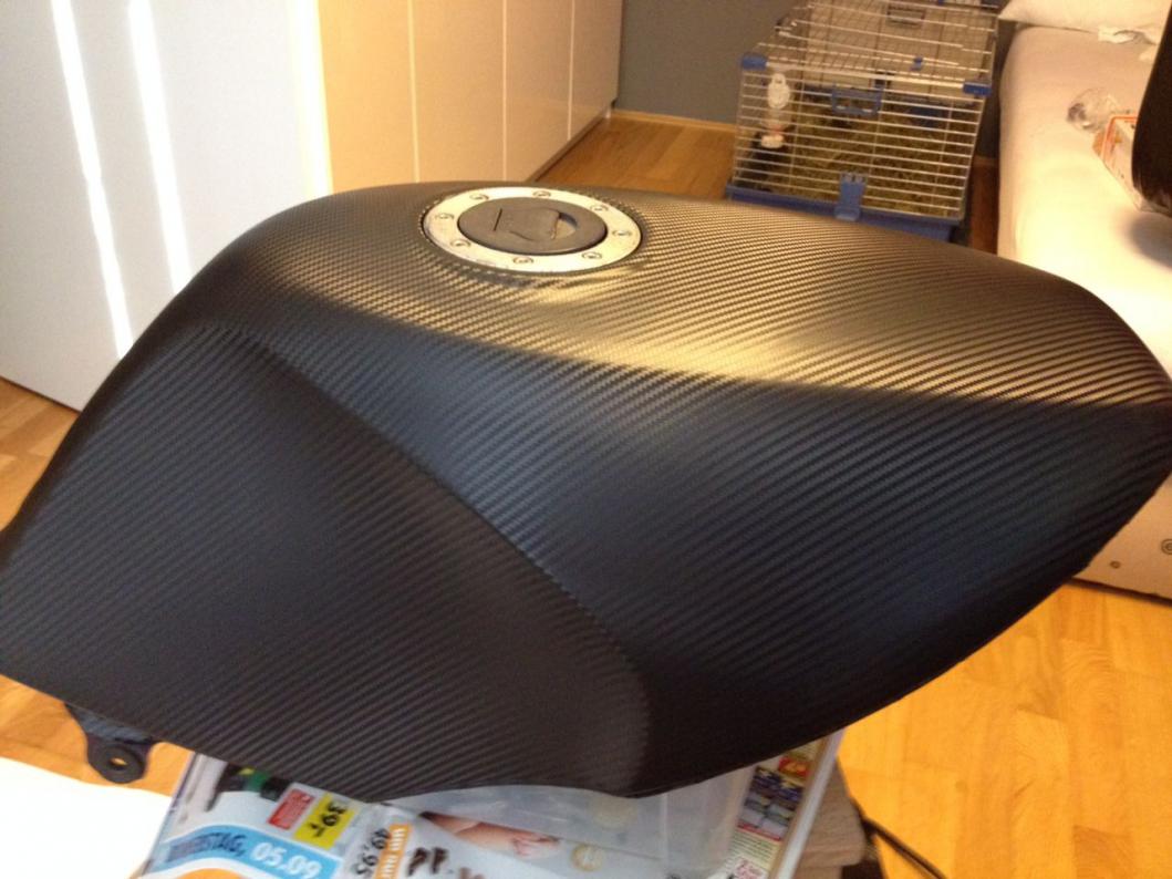 Wo ist denn der Unterschied, ob ich ein Auto oder ein Mopped foliere? Steht das Auto nicht auch mal bei 30° in der Sonne und jemand kann drankommen?