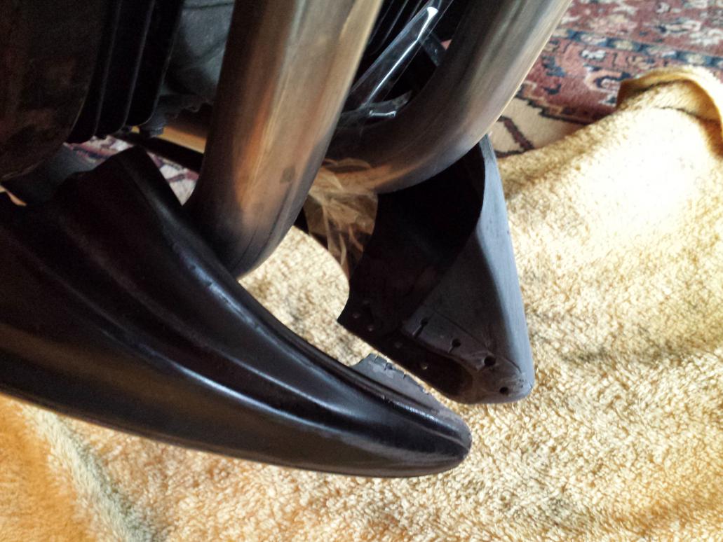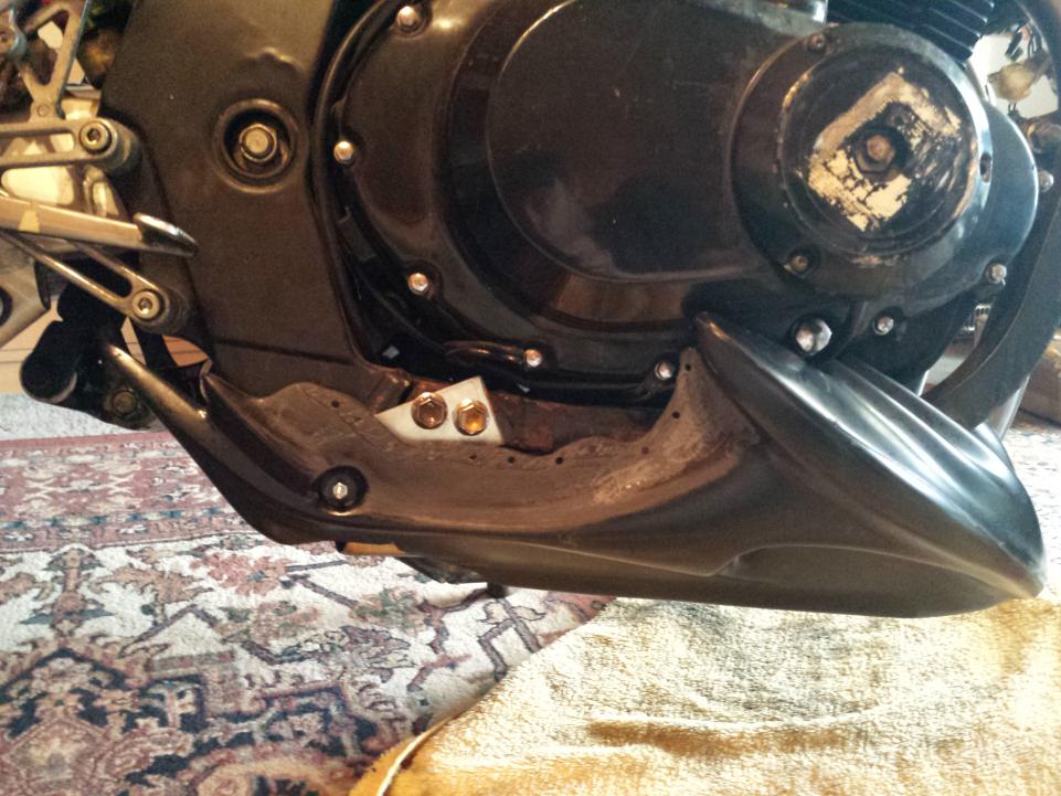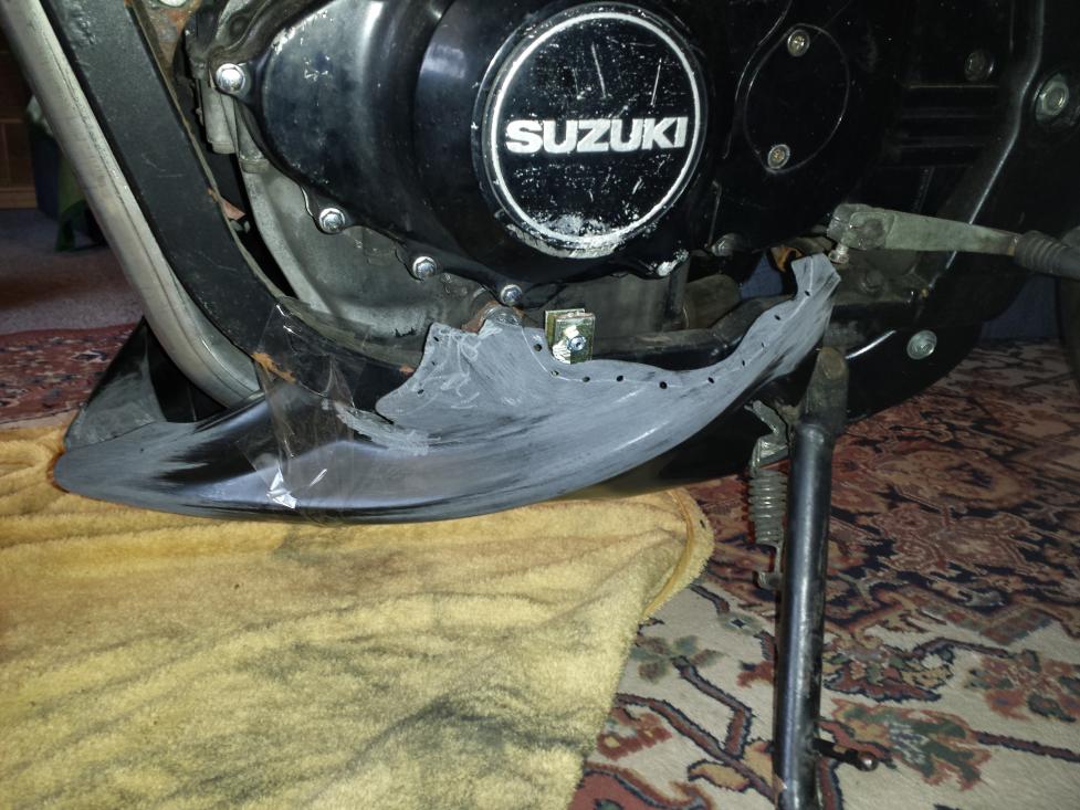 Die verhassten Laminierarbeiten. Bugspoiler und Frontfender sollten endlich an die Formen der GS angepasst werden. Da die Teile eigentlich für die Dicke CBR 900 hergestellt wurden, war es für die Anpassung notwendig die Verkleidungsteile in mehrere Segmente zu zerlegen, und wieder entsprechend zusammen zu fügen. Um eine optimale Haftung der zu verbindenden Teile zu gewährleisten, wurde alles sorgfältig angeschliffen und entfettet.