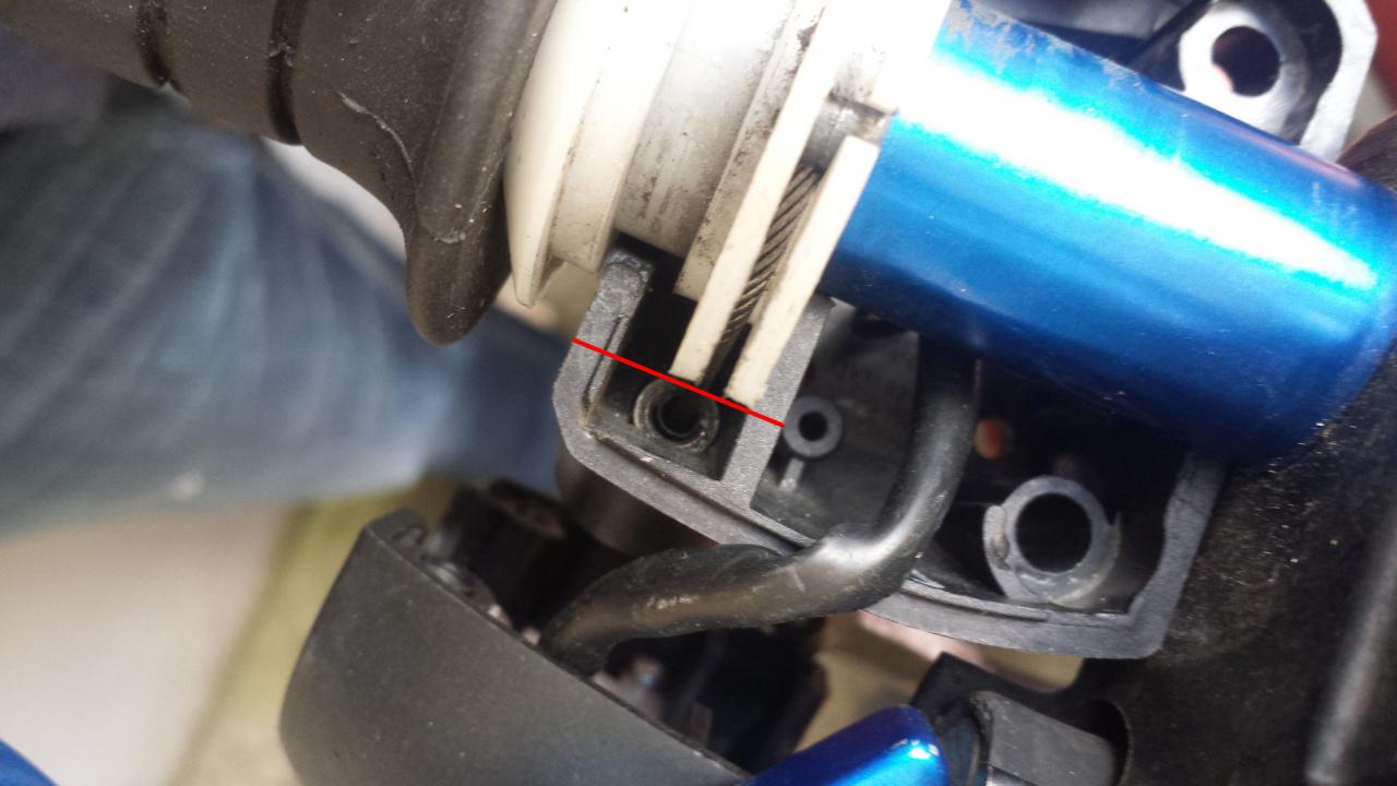 Hier sieht man was ich meinte, dass ich den Gasgriff entgegengesetzt der Zugrichtung noch ne ganze Ecke drehen kann; sollte bei normal gespanntem Zug eigentlich nicht der Fall sein.