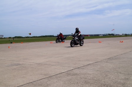 Am Anfang würde erstmal geguckt wie vertraut wir mit unseren Motorrädern sind. Heißt im stehen fahren, einhändig usw.