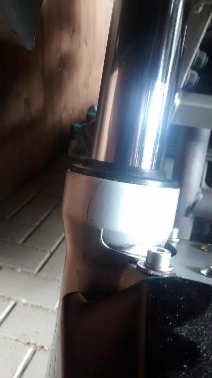 Beim kauf die Schweißnaht übersehen. Und darunter verbarg sich der Riss. Eigentich wollte ich sie neu abdichten, jetzt wird die Gabel zerlegt und geht in Einzelteilen weg. |