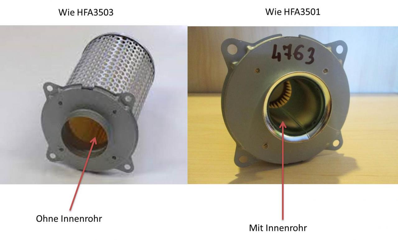 ich hab genau das gleiche Setup wie du! Meine Suzi ist Bj. 1995 Guck mal ob dein Luftfilter ein Innenrohr hat. Wenn nicht versuchs mit dem HFA3501. Gibts bei den großen dreien. Wär cool wenn du berichtest, obs auch bei dir das Problem behebt. Ein erklärendes Bild hab ich angehängt Gruß Campi