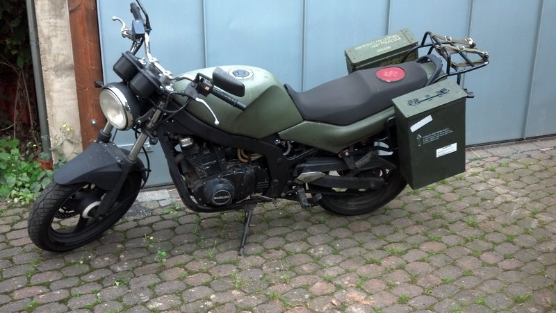 Neben der Bandit habe ich seit Ende Januar nen Golf 2 GT in Tornardorot, BJ 10/90. Er hat ein paar kleine Roststellen und der Lack ist derbe stumpf. Die Kunststoffleisten brauchen Pflege, die sind grau statt schwarz. Das polieren und Rost beseitigen passiert wohl Ende März, die Frontscheibe muss dafür raus, weil sich Rost um das Scheibenwischerloch gebildet hat, der bis zum Scheibenrahmen geht.