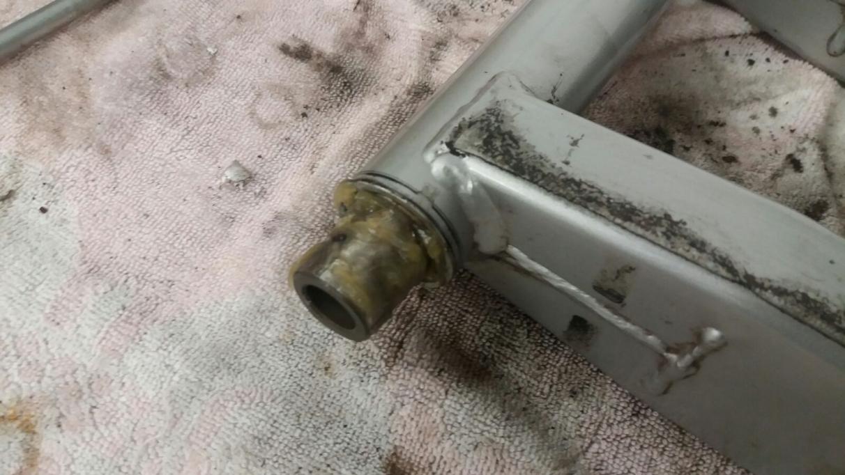 Man kann das auch mit eingebautem Federbein machen, braucht dann aber robuste Spanngurte und viel Kraft |
