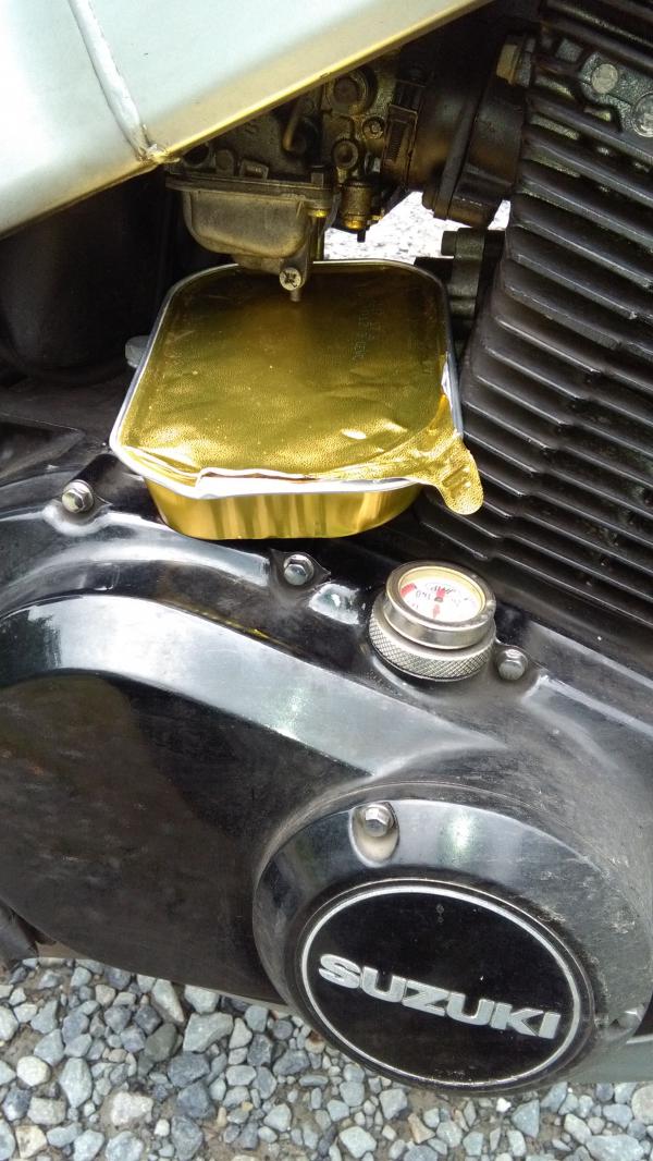 Meine Gixxer in ihre neue Garage gebracht und geschaut, ob die Kamera-Halterung mit Saugnäpfen aufm Tank hält.