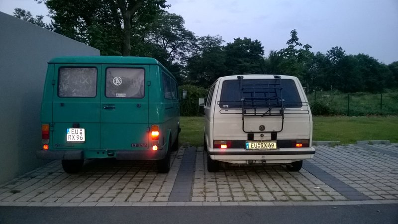 Mich begleiten nach wie vor die Busse; Der LT (blauweiß) ist nun mein fünfter (und meine Wohnung) Der T3 ist seit einigen Jahren mein treuer Begleiter (und Zweitwohnung Der Audi A4 V6 kam als Winterranzratte neu dazu Und der Peugeot 307 (für 150€ gekauft, LKW Zulassung mit 2l Diesel unbekannter Herkunft) ist die Ranzratte meiner Mitbewohner Der grüne LT war meiner und ging dann an meine Mitbewohner über. (Nicht im Bild der V70XC und der C306 von Volvo) Wir mögen Brumbrums Grüß euch, Martin