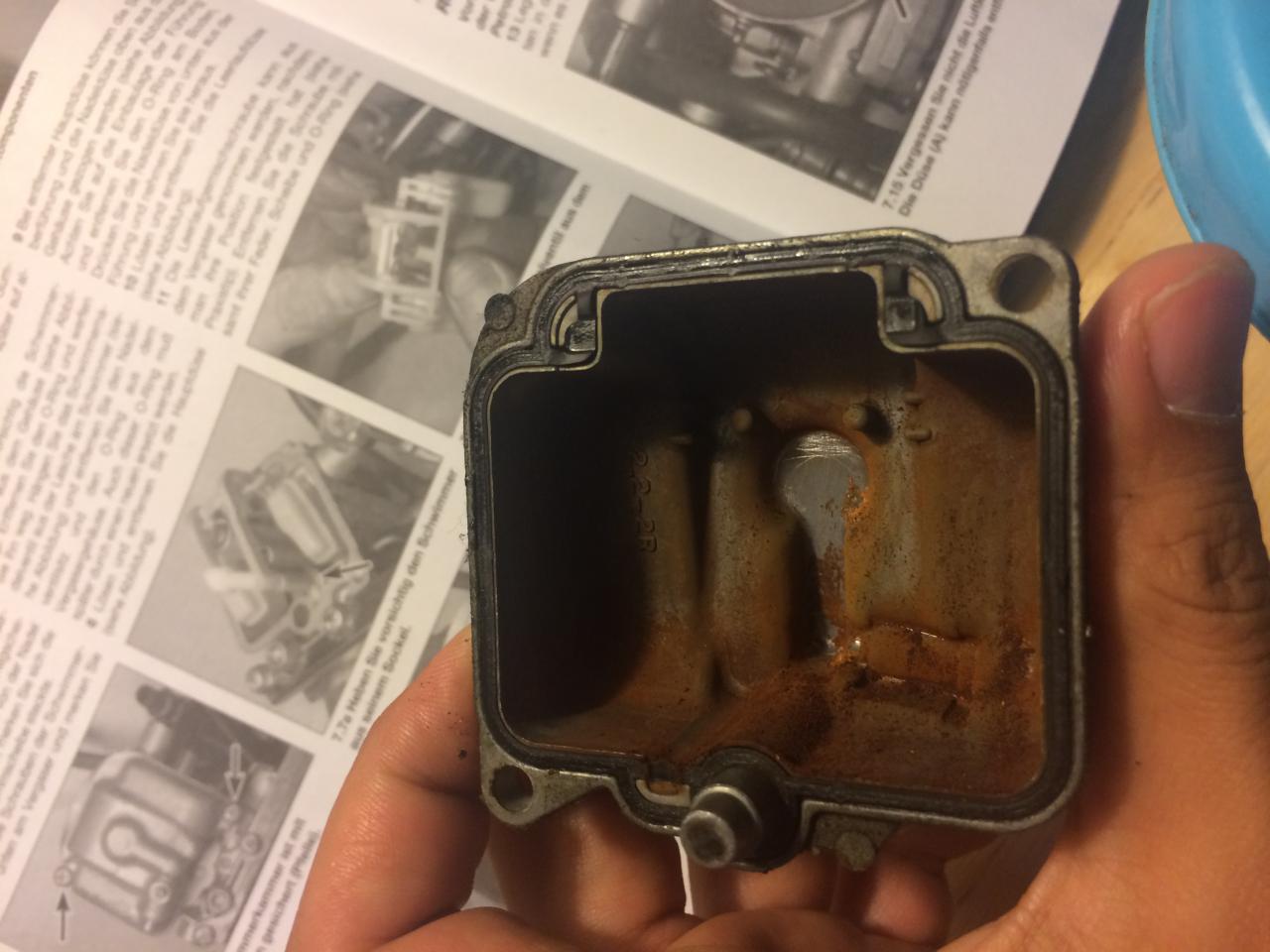 Heute mal Öl gewechselt, wie zu erwarten hat der Ölfilter ganz schön nach Benzin gestunken. Zum Vergaser bisher keine Zeit gehabt, der kommt morgen dran. Die 6L Ölwanne ist auch ganz schön voll geworden, das sieht, eher nach 4.5-5 Liter aus, uiuiui. Wenn man bedenkt, dass 2,9L rein sollen... Mir ist zudem bei der Demontage des Luftfilters aus dem Luftfilterkasten eine der Schrauben in die "Wanne/untere Anbringung" des Federbeins gefallen und jetzt krieg ich die auf Teufel komm raus nicht mehr raus O.o