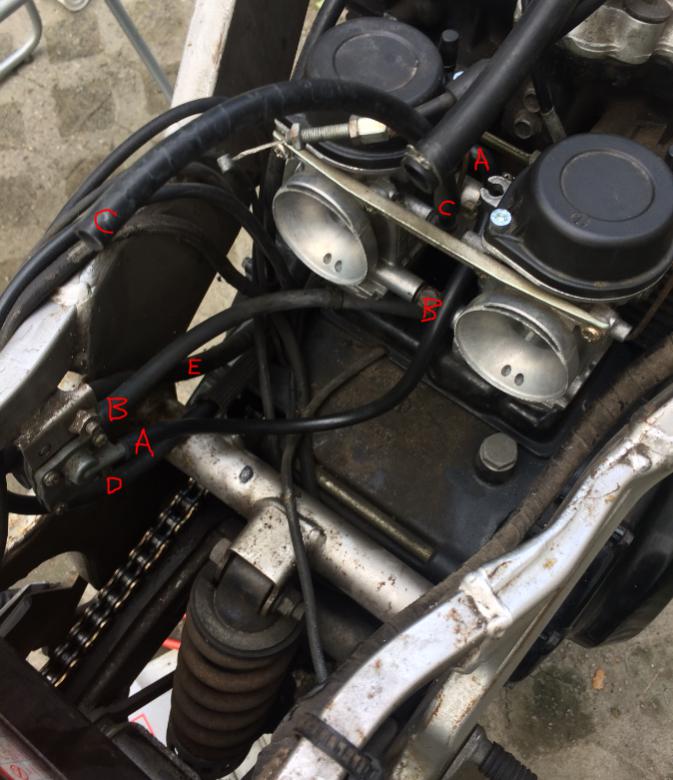 Eine Kleinigkeit ist mir aufgefallen, du solltest umgehend den Gas-Bowdenzug tauschen der dröselt sich auf (da wo du diesen am Vergaser einhängst) und schau dir den Choke-Zug ebenfalls an, wenn du eh grad Teile bestellst .