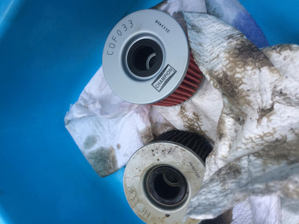 Heute mal Öl gewechselt, wie zu erwarten hat der Ölfilter ganz schön nach Benzin gestunken. Zum Vergaser bisher keine Zeit gehabt, der kommt morgen dran. Die 6L Ölwanne ist auch ganz schön voll geworden, das sieht, eher nach 4.5-5 Liter aus, uiuiui. Wenn man bedenkt, dass 2,9L rein sollen... Mir ist zudem bei der Demontage des Luftfilters aus dem Luftfilterkasten eine der Schrauben in die "Wanne/untere Anbringung" des Federbeins gefallen und jetzt krieg ich die auf Teufel komm raus nicht mehr raus O.o