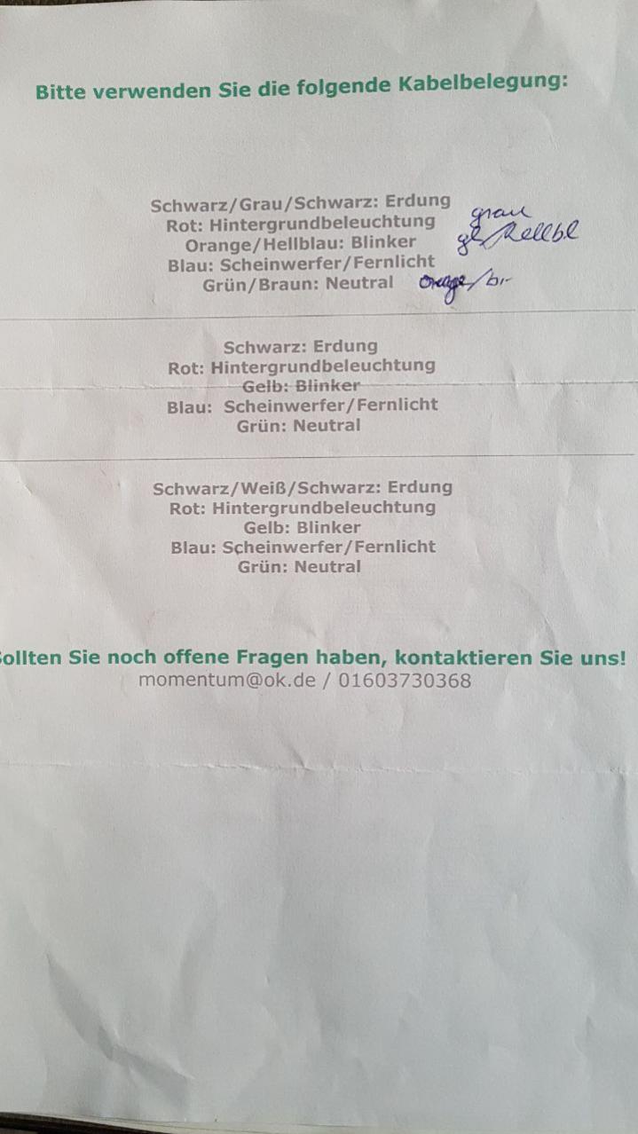 -Ich glaube das der Neutralschalter über Masse läuft und mit der orangenen Plusphase ging die ursprüngliche Glühlampe an.