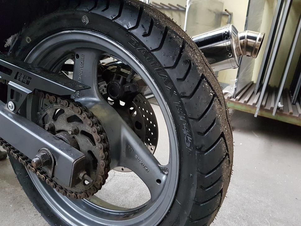 Und wieder war ich fleißig. Momentan sieht mich meine bessere Hälfte kaum. :P Ich hab ganz viel Kleinkram gemacht. Die ein oder andere Schraube durch Edelstahl ersetzt, die beiden fehlenden Halter für den Bugspoiler angefertigt, ein neuer Hinterreifen wurde verbaut (BT45), Tankdekor geklebt, Hitzeschutz um den Krümmer gewickelt...