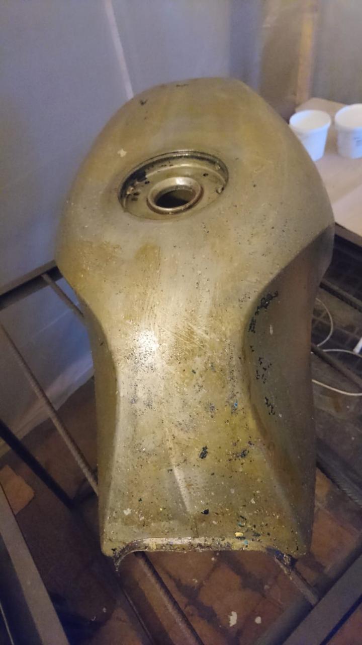 so sieht der Tank aus, wenn er aus dem entlackungsbad kommt