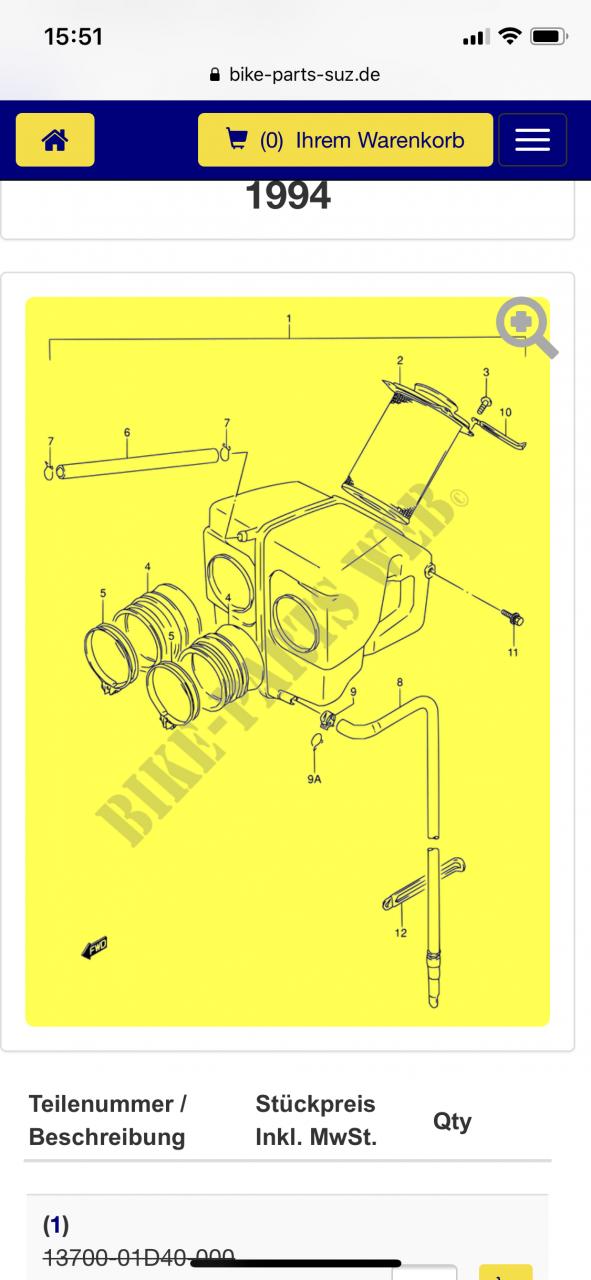 Yau, geht nach rechts. Rechtsseitig am Motor sollte auch eine dieser "Klammern" (in der Zeichnung Nummer 12) sein, mit dem das Ende der Airboxdrainage (und auch einiges andere, zB der Batterieüberlaufschlauch) dort fixiert wird.