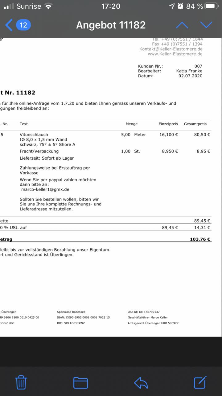 Ich habe die Vitonschläuche bei Keller Elastomere bestellt.