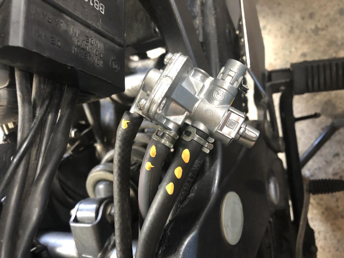 Nun sind alle Schläuche neu, also 2x Tank-Hahn, Unterdruck Hahn-Vergaser unteres T, Schlauch Entlüftung Tank, Entwässerung Luftfilter, Benzinschlauch zum Vergaser, Leerschlauch oberes T und der Hahn selber. Dann mal alles im Stand laufen lassen, Ergebnis (habe ja keinen Führerschein für das Ding), im Stand längere Zeit höhere Drehzahl abgefordert, lief einwandfrei, ging nicht aus, was sie vorher tat, warten wir die Probefahrt ab. Viele Grüße Lars |