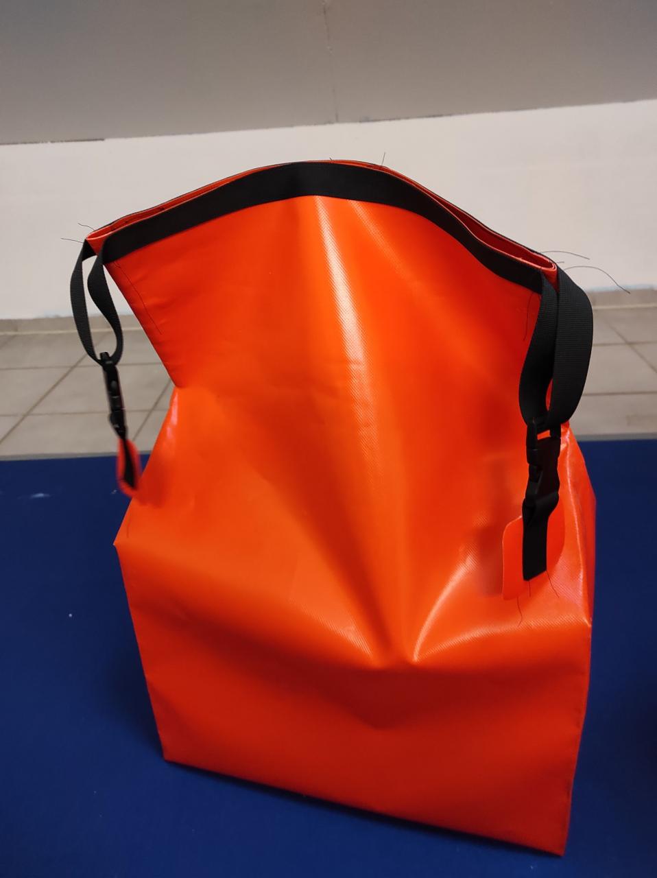 die Schnellverschlüsse kommen jeweils an die Seite und werden mit einem eigenen Stück PVC aufgeklebt. Außerdem sind sie links und rechts unterschiedlich orientiert... dann kann man auch die beiden Enden oben zu machen und hat eine Trageschlaufe...