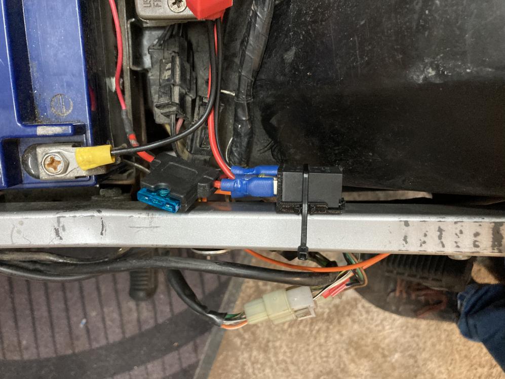 Den Laststrom für die Griffheizung und der USB Ladebuchse über ein Relais geleitet welches mit der Zündung eingeschaltet wird.