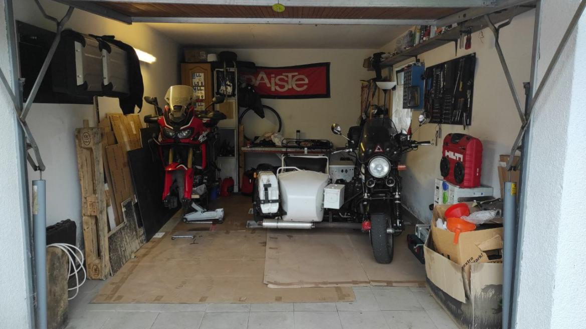 Garage aufgeräumt, Vorderrad von meiner AT ausgebaut (kommt morgen neues Gummi drauf)