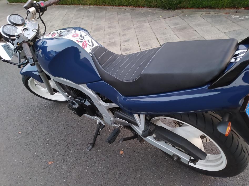 Sie besaß neue Bremscheiben und progressive Gabelfedern und hatte 40tkm drauf, Vorbesitzer waren fast ausschließlich Frauen; das Mopped schien auch wenig Regen abbekommen zu haben, also war das Angebot ok.