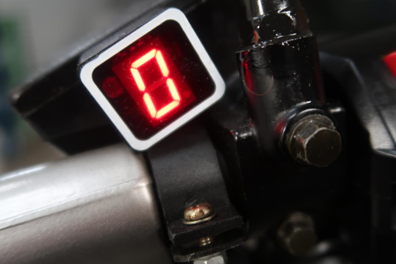 Angezeigt wird der eingelegte Gang über eine einstellige rote Digitalanzeige am rechten Lenker, deren Helligkeit sich dem Umgebungslicht anpasst.
