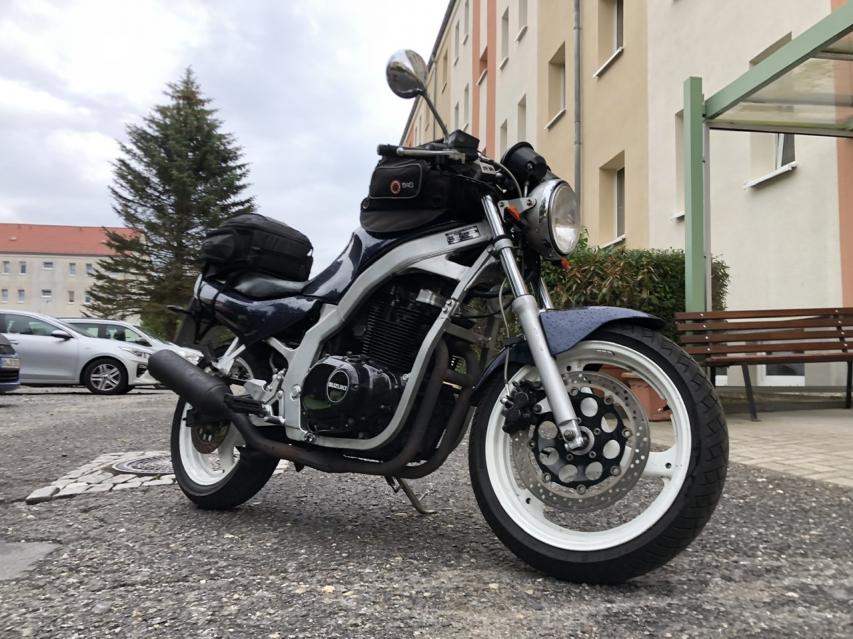 Die Bandit zur Arbeit genommen und dabei bis auf die Unterwäsche nass geworden, dabei hat es nicht mal stark geregnet. Die Regenkombi hält im Schritt nicht mehr dicht.