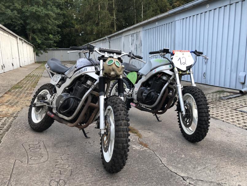 Anpassung auf K&N Lunchbox habe ich nach einem Tag aufgegeben. Das Sandbahnmotorrad läuft nur einmal im Jahr bei einer speziellen Veranstaltung. Gegen alte Motocrossmotorräder (bis BJ89, bis 500 Kubik) ist man eh chancenlos, da helfen auch 2PS Mehrleistung nicht. Naja, zumindest habe ich das lauteste Motorrad, ESD ist nicht vorhanden. Der Einfluss des fehlenden Schalldämpfers ist übrigens auch viel geringer, als ich dachte. Es fehlt ein Hauch Drehmoment, da wir (mein Sohn hat sich auch eine gebaut) aber sowieso mit recht kurzer Übersetzung fahren, ist das nicht spürbar.