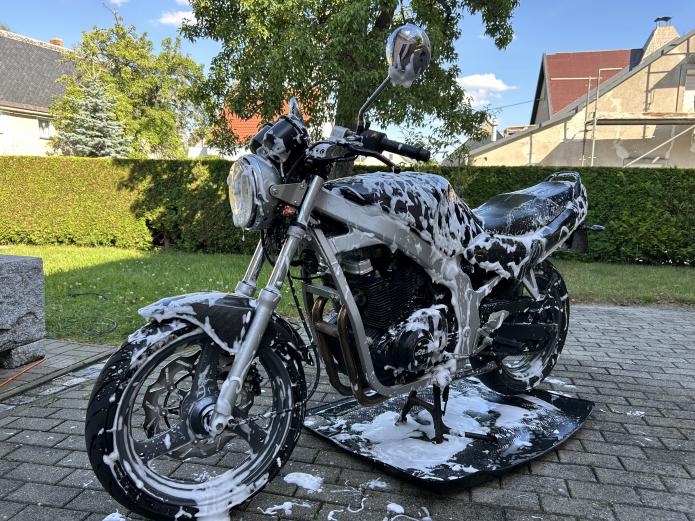 Fehlt nur noch ein neuer Hauptständer, der ist einfach weggerostet an der Schweißnaht. Zum Glück hab ich es beim Aufbocken gemerkt und konnte sie dann mit viel Mühe auf dem Seitenständer abstellen bevor sie ins Gebüsch fällt. ![]() Ansonsten bekommt die Bandit vor dem Forumstreffen noch neue Reifen und neue Bremsbeläge hinten. |