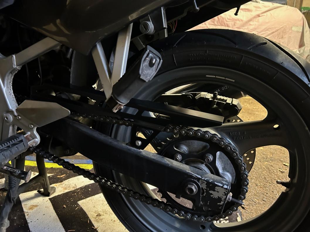 Bei meines Bruders grade gekauften SV1000 neue Reifen aufgezogen, Kupplungsflüssigkeit getauscht, Kettendurchhang eingestellt, Kette gefettet, Seitenständerachse gefettet, ein paar Schrauben nachgezogen und die BSM Anlage ohne Killer angehört. Bollert in der Garage schon ganz gut
