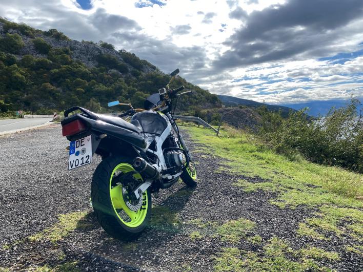 Anbei mittleres Bild von 2017 mit einem Bekannten oberhalb von Karlobac (da hatte er noch die Bandit - heute fährt er Guzzi Breva1100). Da linke Bild (2022) ist von Korcula - mit meinen beiden Motorradspezis (besser gesagt ihren Maschinen: Breva und Griso)