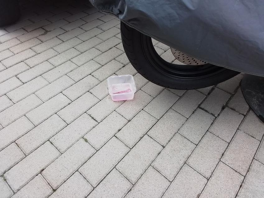 Ich habe jetzt eine Schale mit Zitronenreiniger hinter das Hinterrad gestellt. Heute war nichts. Habe gelesen das Katzen Zitronengeruch nicht mögen. Schauen wir mal...... |