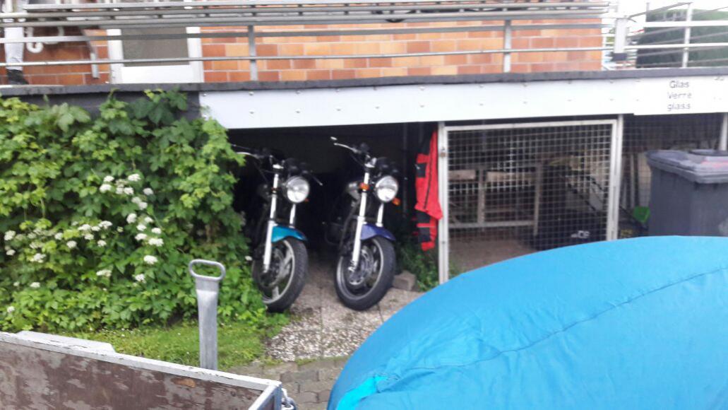 Meine Gixxer in ihre neue Garage gebracht und geschaut, ob die Kamera-Halterung mit Saugnäpfen aufm Tank hält.